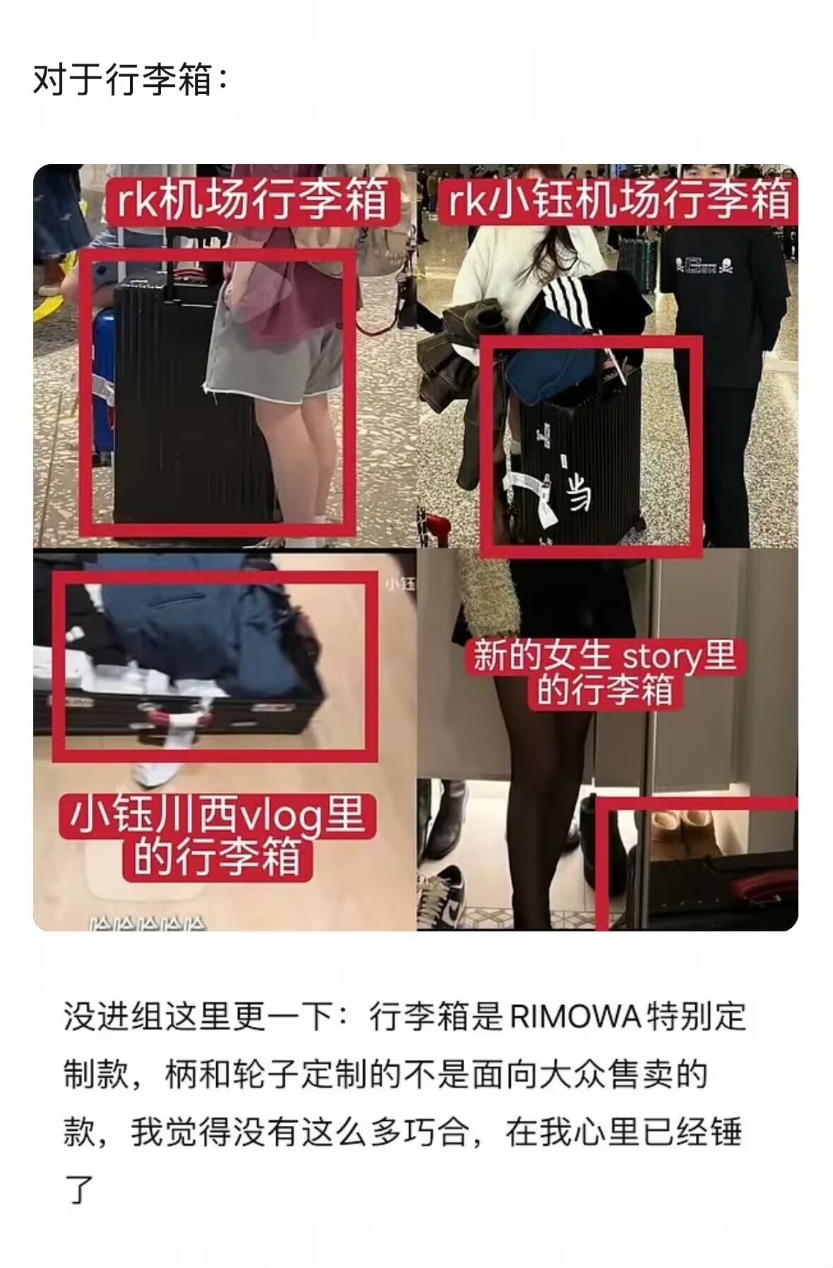 According to爆料 from Douban users, this female网红 started interacting with ROOKIE only in the past six months. In her videos, she多次 shows items related to ROOKIE, such as his同款 jacket, shoes, and suitcase. The爆料 notes that ROOKIE's suitcase is定制, unavailable to普通公众, leading to猜测 that ROOKIE had connections with this网红 long ago.